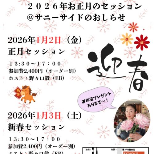 つきましては、今月のみ1/11(日)13:30~17:00に変更してお送りします。