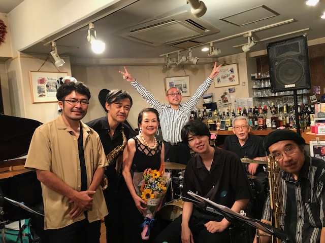 トミー諸田(Ds)、東まこ(Vo)、栗山雄暉(Tp)、宮崎勝央(As)、青木タイセイ(Tb)、寺島優樹(P)、矢野伸行(B)