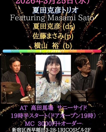 夏田克彦(Ds)、佐藤まさみ(P)、横山裕(B)